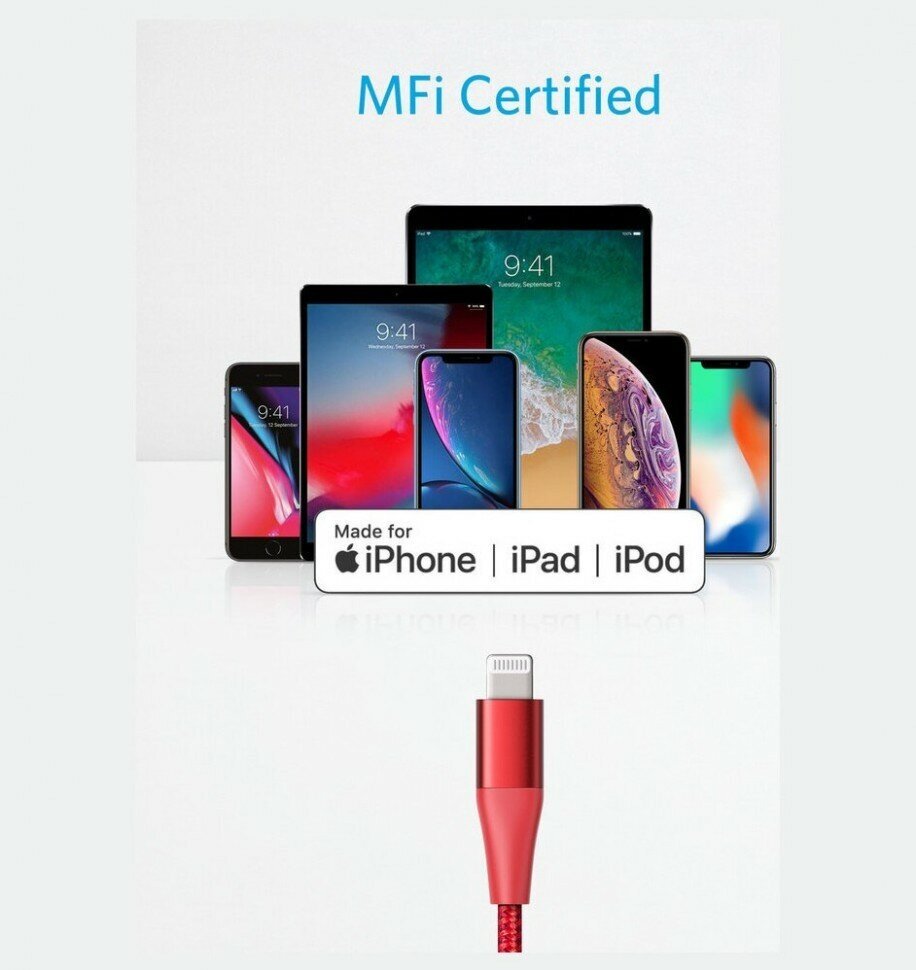 Кабели Anker – это всегда про прочность и надежность. Anker PowerLine+ II не исключение. На самом деле, он такой прочный, что способен выдержать до 80кг веса или более 30.000 сгибаний. Все благодаря «щитам» из меди и алюминия, термопластичной оболочке и плетеному нейлону. Сертификат соответствия MFi гарантирует, что провод можно использовать с любыми устройствами Apple, и никаких проблем не возникнет. Интерфейс подключения - Lightning/USB-C; MFi-сертификация гарантирует совместимость со всеми устройствами Apple; Способен выдержать более 30000 сгибаний; Сделан из высококачественных материалов; Прочные и удобные коннекторы; Нейлоновая оплетка обеспечивает высокий уровень износостойкости; Длина - 180см; Цвет - красный.