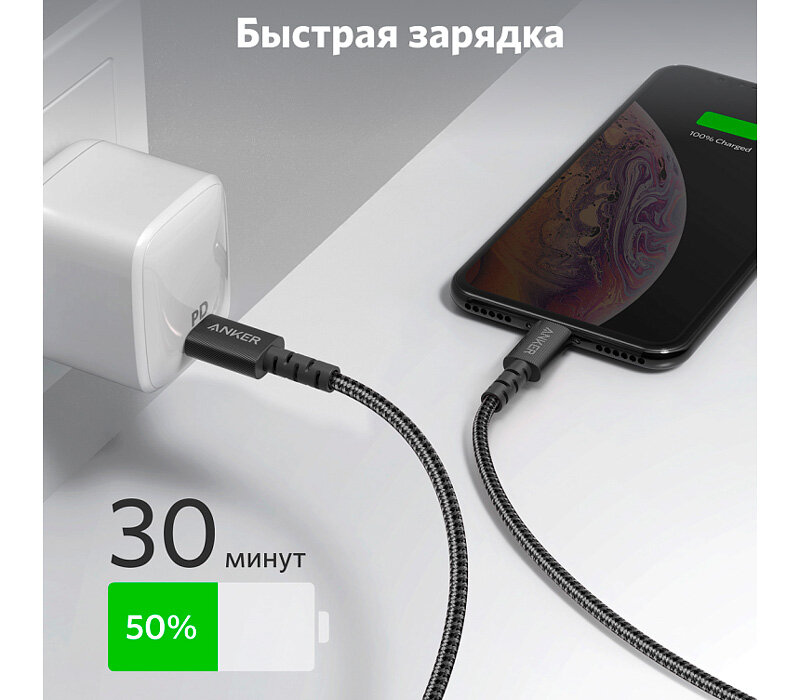 - Кабель Anker PowerLine Select USB-C Cable with Lightning connector 90 см / Отличный кабель /