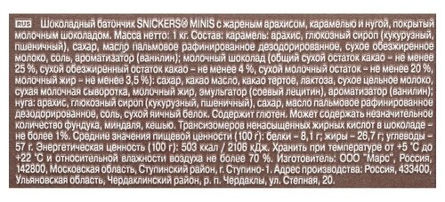 Конфеты шоколадные Snickers Minis 1кг (0079009027)