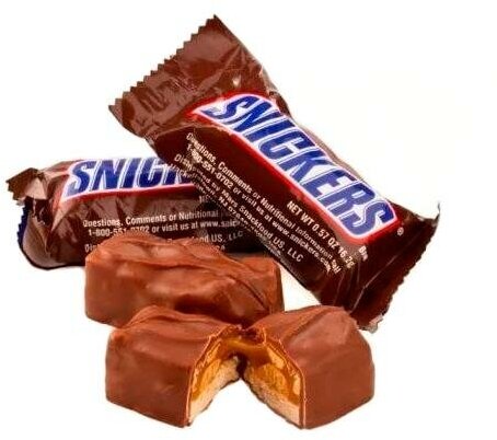 Шоколадный батончик SNICKERS® MINIS с жареным арахисом, карамелью и нугой, покрытый молочным шоколадом.