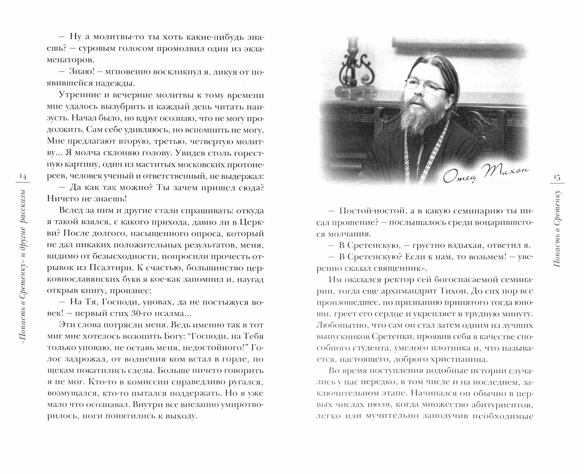 Годы, проведенные в Сретенской семинарии, для большинства семинаристов стали самым счастливым и интересным временем, периодом непрестанных открытий, о которых пойдет речь в книге священника Константина Белого "Попасть в Сретенку". Им посчастливилось застать ее, как и весь Сретенский монастырь, в ни с чем не сравнимую пору - в годы наместничества и ректорства владыки Тихона (Шевкунова), когда весь этот остров веры стал буквально пронизан добрым, теплым, веселым "сретенским" духом. Автор, сам выпускник Сретенской семинарии, показывает владыку таким, каким его видели и запомнили семинаристы, а заодно приводит любопытные истории, отражающие характер наместника. И так как семинаристы жили, учились и работали бок о бок с насельниками - в массе выпускниками той же Сретенской семинарии, - автор пишет и о монахах, живших или доныне живущих в обители.