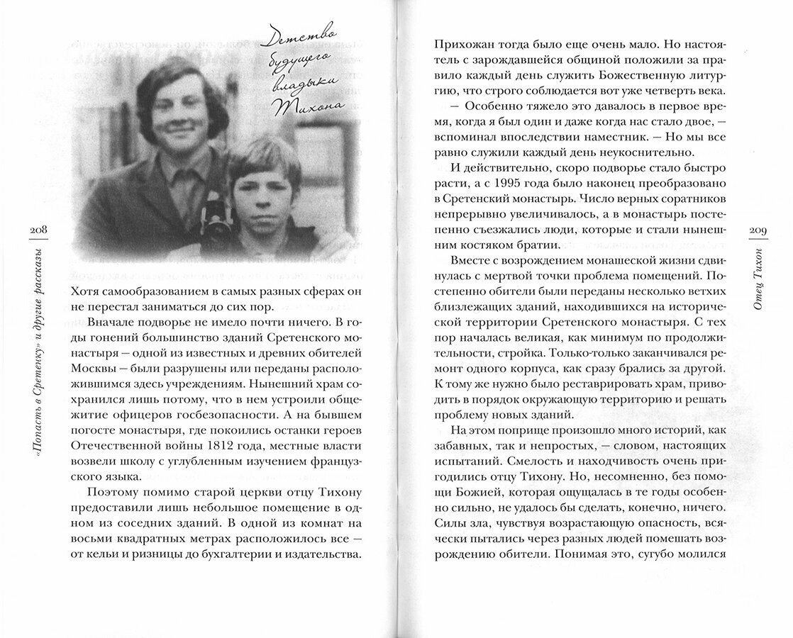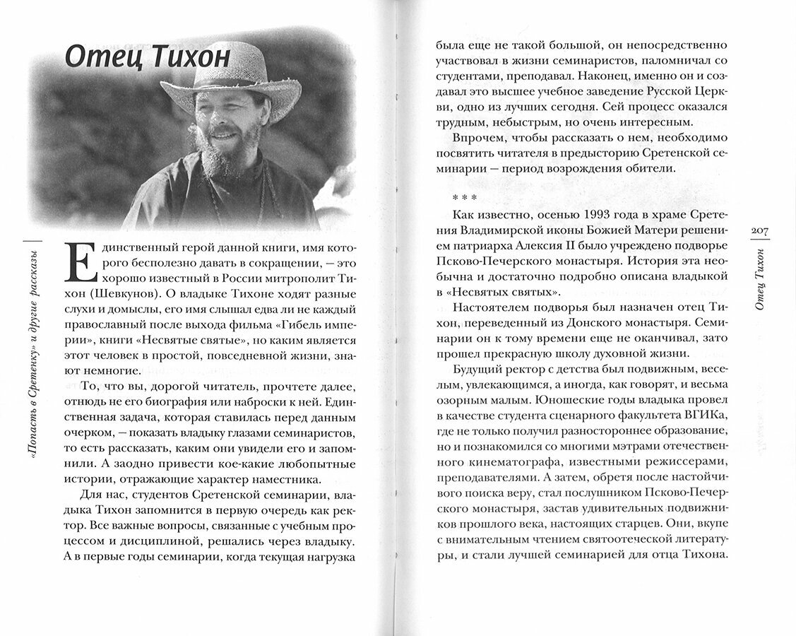 В начале июня 2018 года я первый и единственный раз ездила в Псково-Печерский монастырь,куда как раз приехал только что назначенный на Псковскую кафедру Владыка Тихон(Шевкунов). 2,06,18 ему исполнилось 60 лет,а 3,06,18 он служил свою первую Литургию в Троицком Псковском кафедральном соборе,после которой о.Константин Белый и семинаристы,приехавшие с владыкой из Москвы,преподнесли ему в подарок книгу с воспоминаниями о годах,проведенных в стенах Сретенки. Только называлась она "Бурсаки с Большой Лубянки".О.Константин сказал,что появилась книга,благодаря идее,поданной вл.Тихоном, собирать интересные истории из жизни о том,как люди пришли к Богу. В книге живо и интересно описан процесс обучения в семинарии,начиная со вступительных экзаменов.На ее страницах мы знакомимся с интересными людьми,монахами,большинство из которых никогда не подозревали,что встанут на путь служения Богу,но Промысл Божий привел их туда. Также мы неоднократно сталкиваемся с чудесами,происходящими то тут ,то там. Мне особенно пришлось по душе и запомнилось повествование о проживании первокурсников в скиту,как душевно и с любовью автор описывает природу. Читая книгу, можно и посмеяться над курьезами и шутками,и серьезно задуматься о смысле жизни, о том,как она нелегка у людей с ограниченными возможностями и людей,живущих в доме престарелых,куда мы попадаем с героями произведения. Что особо ценно лично для меня ,так это рассказ о Владыке Тихоне.Очень интересны и полезны эти невыдуманные истории,переносящие нас в бытность студентов Сретенской семинарии,всем рекомендую к прочтению! На меня эти светлые рассказы действовали умиротворяюще и позитивно,я с большим удовольствием прочитала данную книгу за 3 дня!