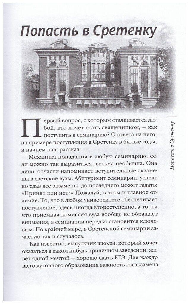 В книге повествование строится, начиная с момента поступления. Интересно описываются экзамены, организация быта и жизни учащихся семинарии. Интересны и другие главы: о тюремном служении, о помощи в интернатах и доме престарелых, о возрождении деревянных храмов на Севере, о преподавателях. Всё интересно!