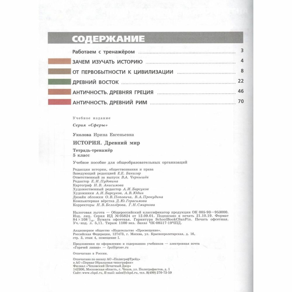 Тетрадь-тренажёр является составной частью учебно-методического комплекта «История. Древний мир» для 5 класса линии УМК «Сферы».