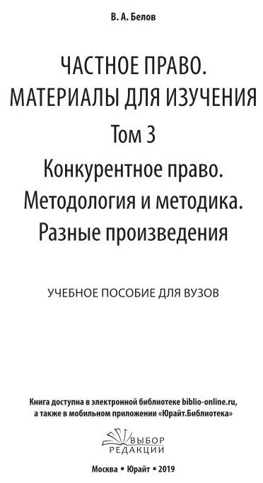 Частное право Материалы для изучения Том 3 Конкурентное право Методология и методика Разные произведения Учебное пособие (Белов Вадим Анатольевич); ЮРАЙТ, 2022