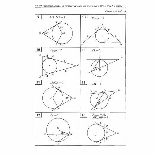 Предлагаемое вниманию читателя пособие содержит более 1000 разноуровневых задач и упражнений по основным темам программы геометрии (планиметрии) 7-9 классов, скомпонованных в 3 комплекта по готовым чертежам. 7 класс содержит 15 таблиц, 8 класс — 25, 9 — 12 таблиц.