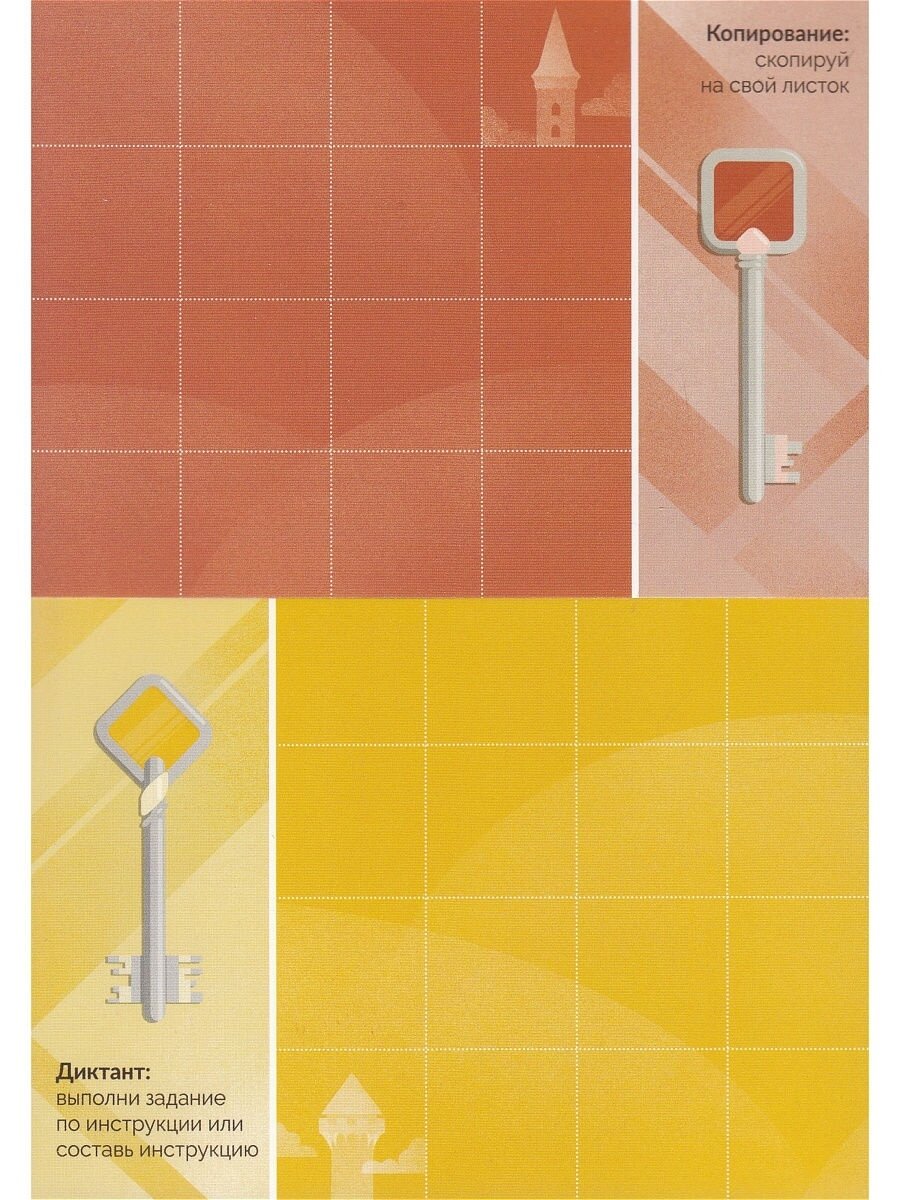 Четыре "ключа" - это правильно выполненные задания четырех типов: копирование, воспроизведение образца по памяти, преобразование изображения и выполнение задания по словесной инструкции.