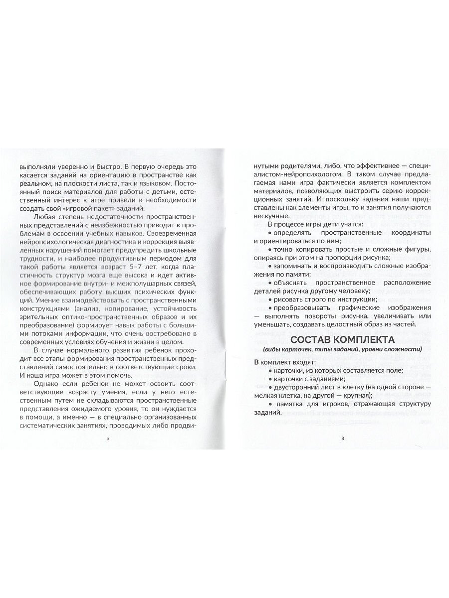 .Игровой набор разработан нейропсихологами для поэтапного формирования пространственных представлений, внимания, памяти, умения действовать по инструкции.