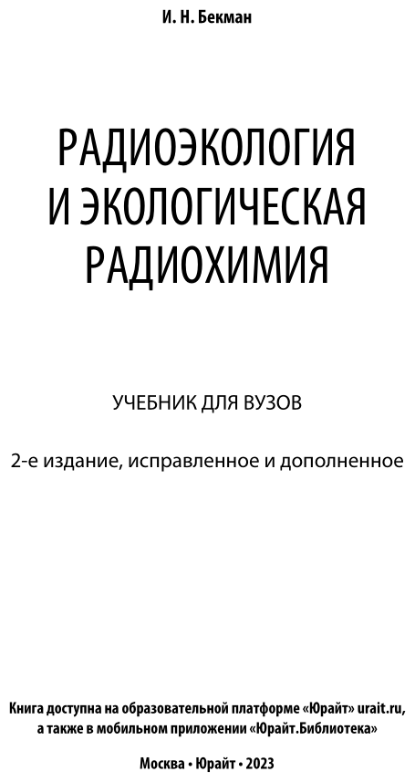 Радиоэкология и экологическая радиохимия Учебник для вузов (Бекман Игорь Николаевич); ЮРАЙТ, 2019
