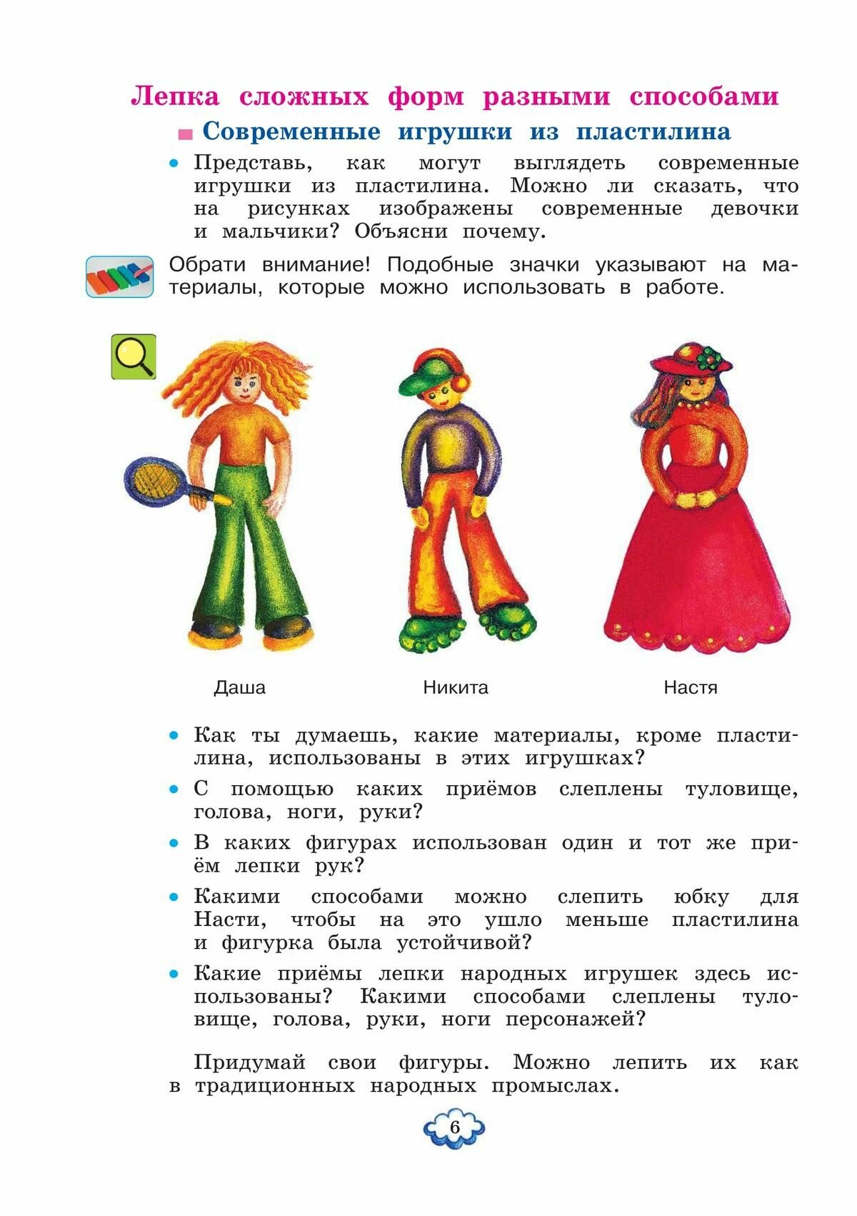 В учебнике даны задания разных типов - от точного повторения образца до создания собственного образа. Система вопросов поможет учащимся приобрести знания, необходимые для работы.