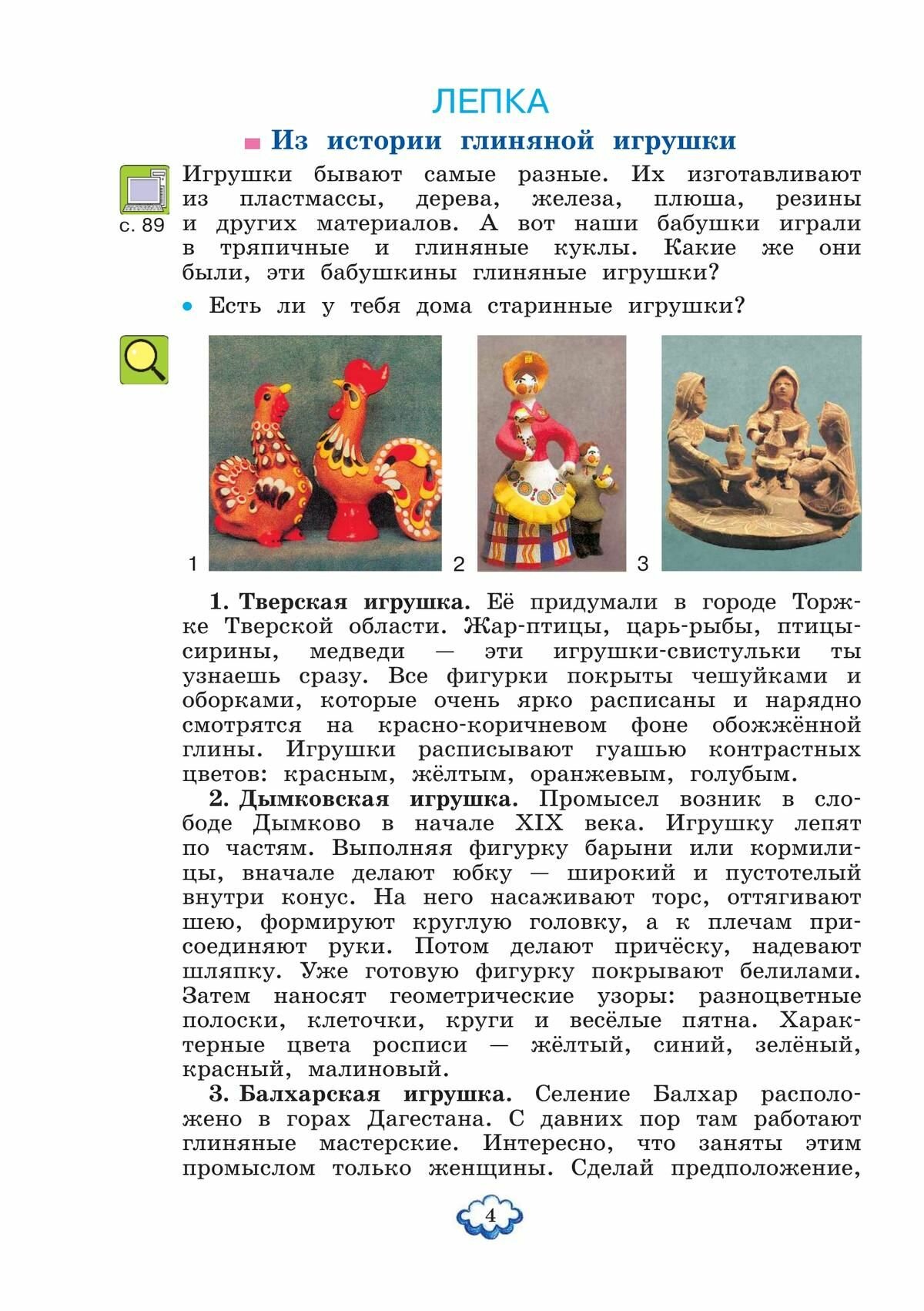 Учебник продолжает знакомить учащихся системы развивающего обучения Л. В. Занкова с программой Н. А. Цирулик "Технология" и предлагает новые виды работ в разделах "Лепка", "Аппликация", "Мозаика", "Плетение", "Художественное вырезание", "Художественное складывание", "Коллаж", "Моделирование и конструирование" (из бумаги, картона, ткани).