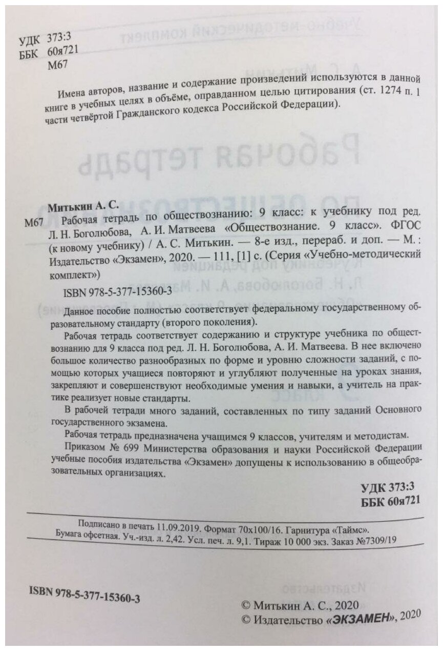 Сервис сравнения цен СкидкаГИД предлагает сравнить цены на товар «Книга: Рабочая тетрадь по обществознанию 9 класс К учебнику под редакцией Л Н Боголюбова А И Матвеева (Александр Сергеевич Митькин); Экзамен, 2019»