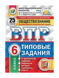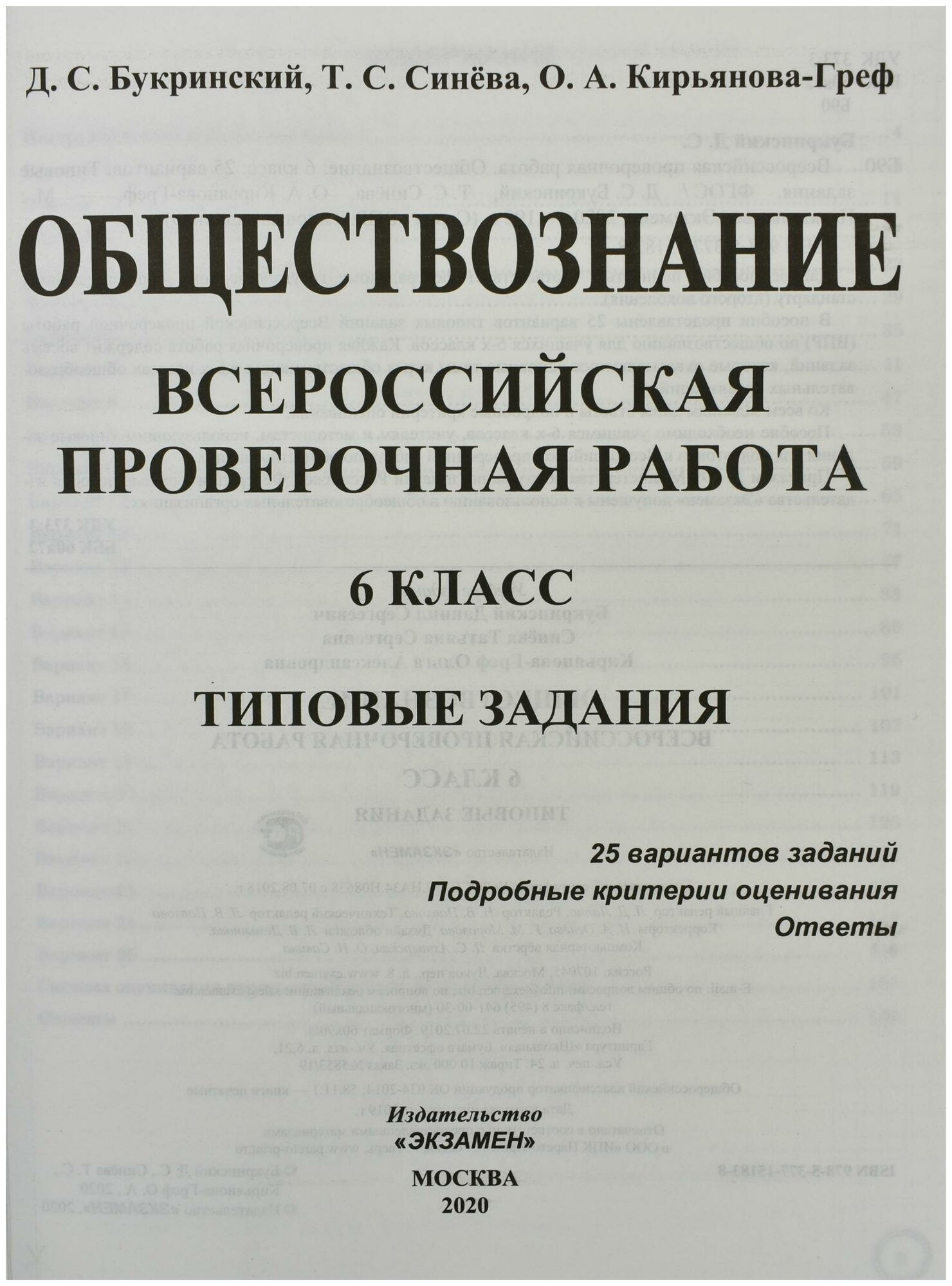 Обществознание Всероссийская проверочная работа 6 класс Типовые задания 25 вариантов заданий (Татьяна Сергеевна Синёва, Даниил Сергеевич Букринский, Ольга Александровна Кирьянова-Греф); Экзамен, 2020
