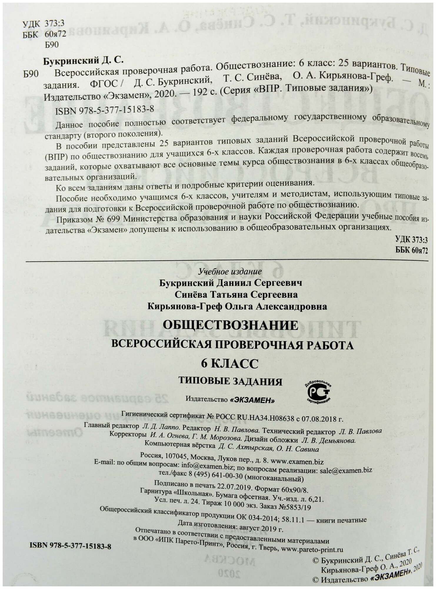 Сервис сравнения цен СкидкаГИД предлагает сравнить цены на товар «Книга: Обществознание Всероссийская проверочная работа 6 класс Типовые задания 25 вариантов заданий (Татьяна Сергеевна Синёва, Даниил Сергеевич Букринский, Ольга Александровна Кирьянова-Греф); Экзамен, 2020»