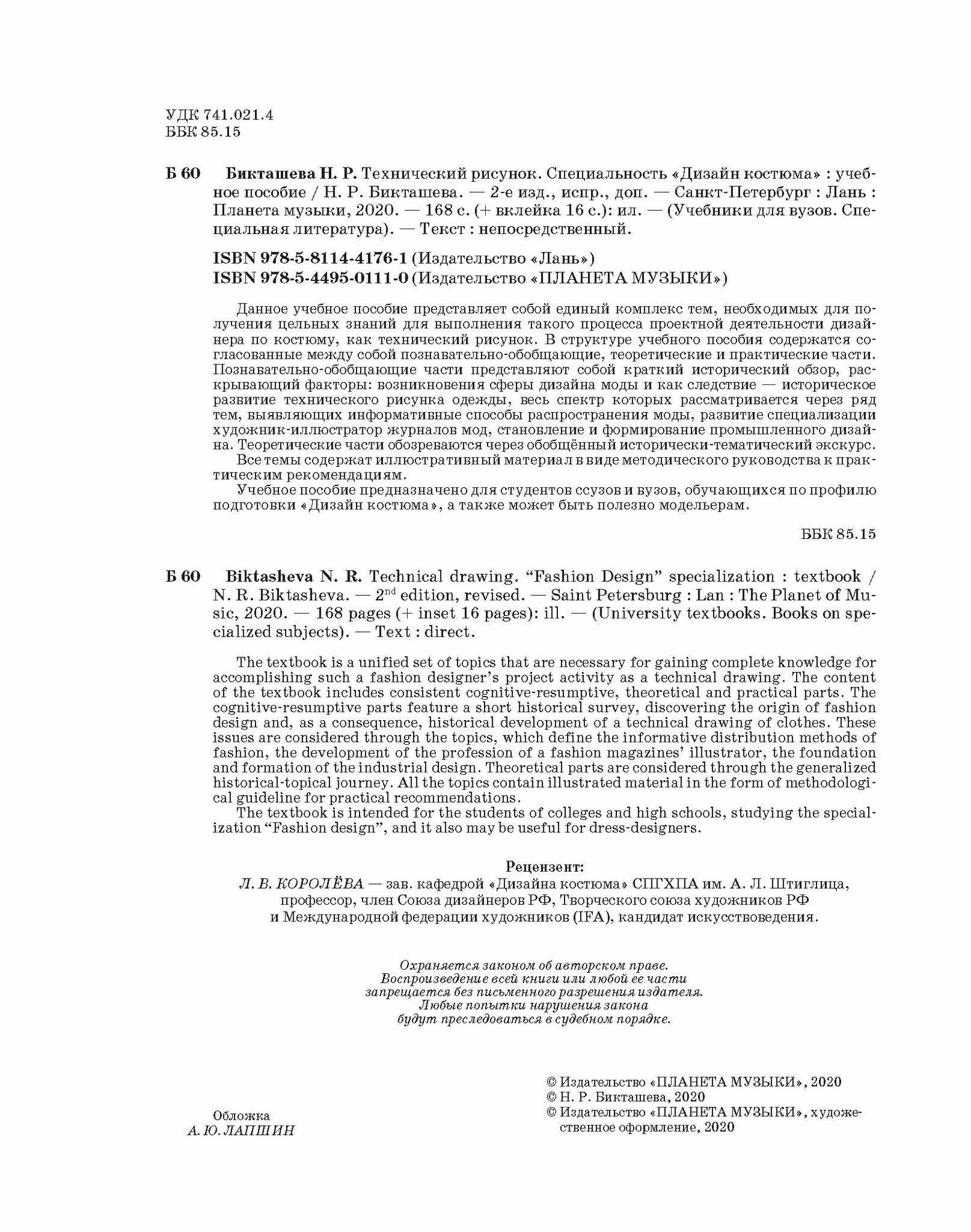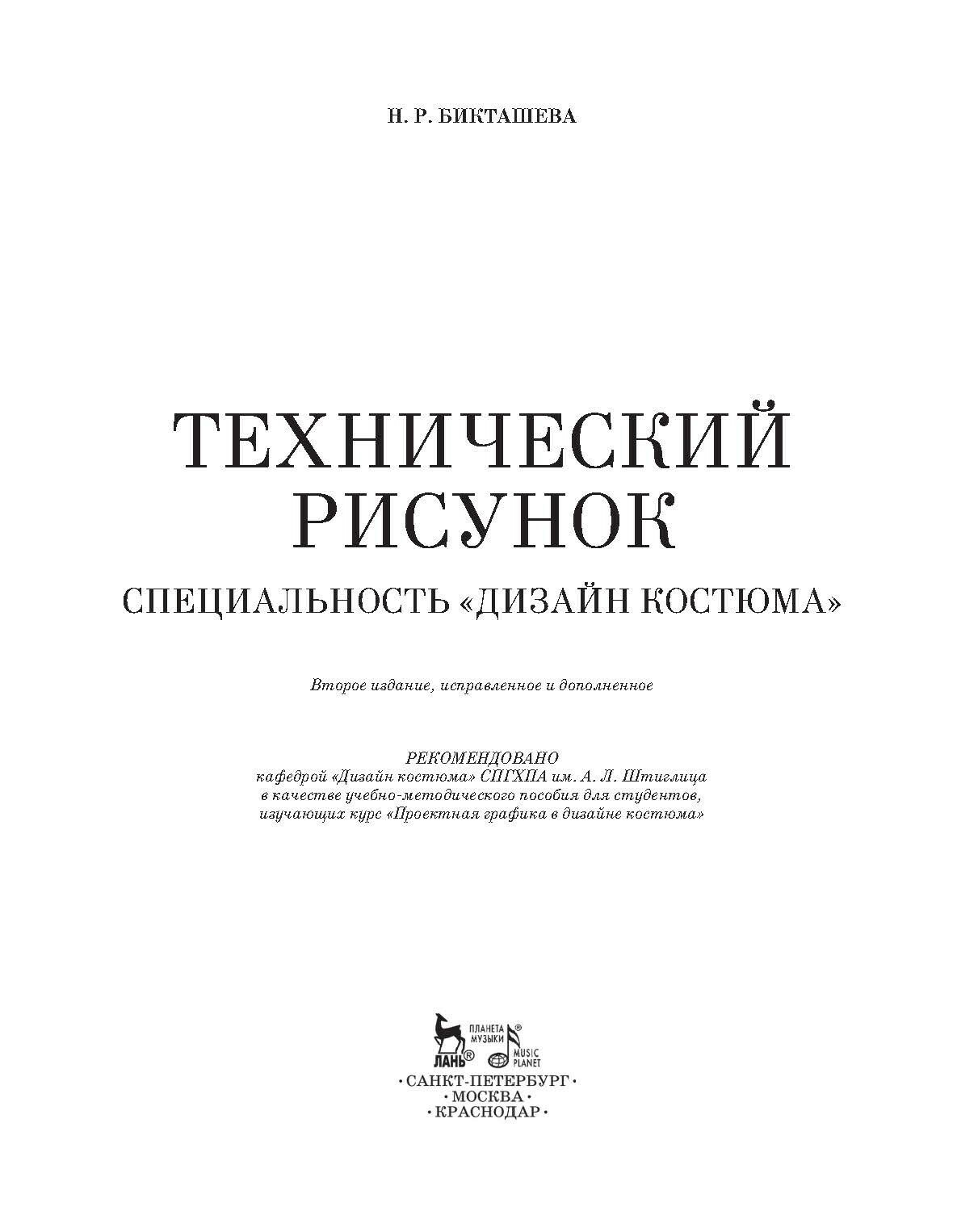 Технический рисунок Специальность Дизайн костюма (Н. Р. Бикташева); Издательство «Планета музыки», 2024