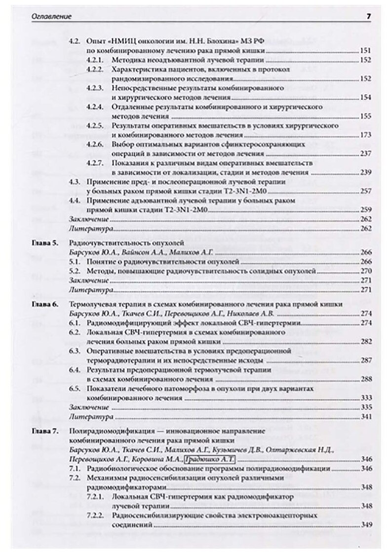 В руководстве обобщен опыт лечения в Федеральном государственном бюджетном учреждении (ФГБУ) «НМИЦ онкологии им. Н.Н. Блохина» Минздрава России (МЗ РФ) 2075 больных раком прямой кишки и анального канала за более чем 30-летний период наблюдения. Определена роль лучевых методов в оценке дооперационного стадирования и их эффективность в процессе противоопухолевого лечения. Созданы новые варианты комбинированного лечения с использованием программы полирадиомодификации, включающей одновременное применение нескольких радиомодифицирующих агентов: внутриполостной СВЧ-гипертермии, внутриректального введения биополимерной композиции, содержащей метронидазол и противоопухолевый препарат Капецитабина. К настоящему времени в «НМИЦ онкологии им. Н.Н. Блохина» МЗ РФ накоплен уникальный и, по сути дела, единственный в РФ опыт по применению в схемах комбинированного лечения программы полирадиомодификации. Инновационный характер данного направления подтвержден 10 Патентами РФ на изобретение, тремя премиями Правительства РФ в области науки и техники (1998, 2004 и 2014 г.), двумя грантами Президента РФ (2007, 2010 г.).