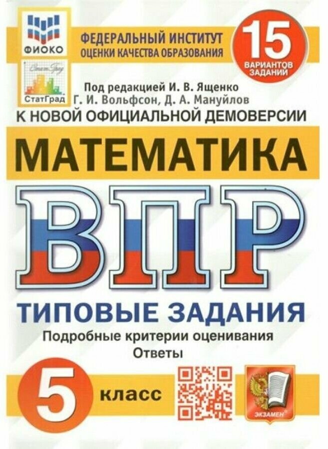 Математика Всероссийская проверочная работа 5 класс Типовые задания 15 вариантов заданий (Вольфсон Георгий Игоревич); Экзамен, 2020