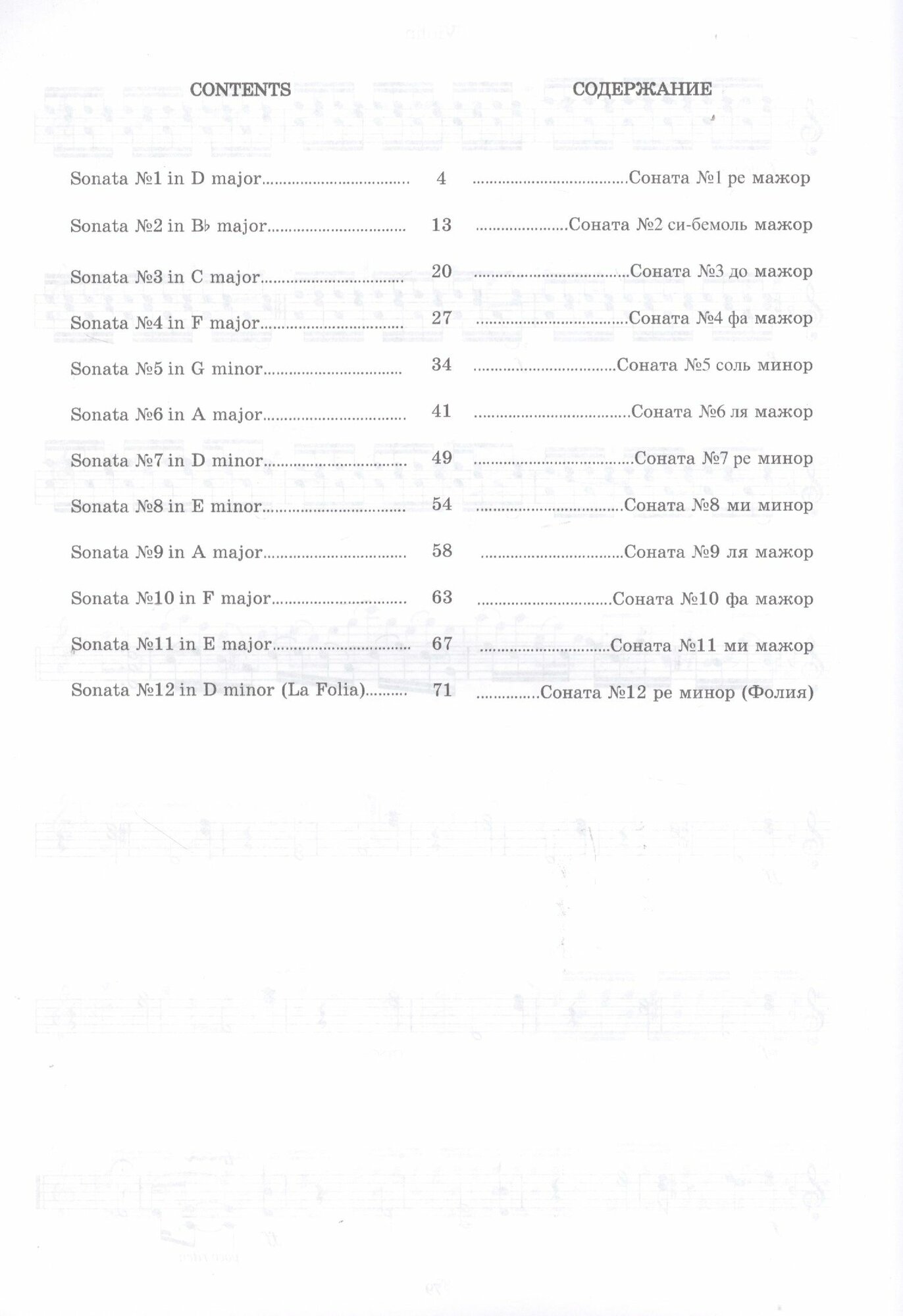 Арканджело Корелли (1653-1713) - выдающийся итальянский скрипач и композитор, родоначальник итальянской скрипичной школы. Скрипичные сонаты, написанные в конце XVII столетия и составившие опус 5, относятся к лучшим произведениям скрипичной музыки доклассической эпохи. Данная, первая тетрадь, содержит полный текст двенадцати сонат (клавир). Вторая, прилагаемая тетрадь, содержит скрипичную партию двенадцати сонат. Сборник адресован скрипачам, учащимся и педагогам музыкальных учебных заведений.