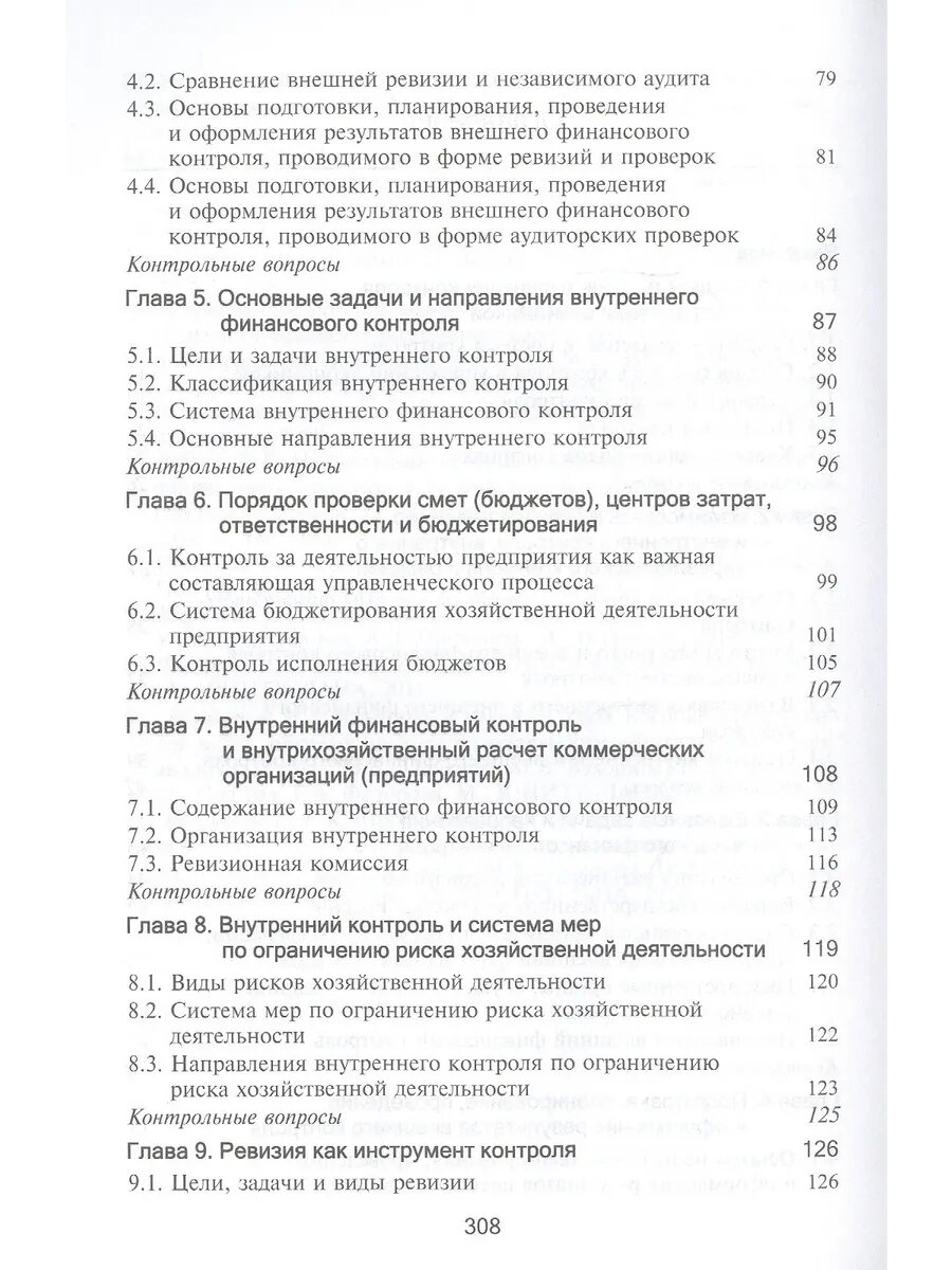 Показаны взаимосвязь и отличия внешнего и внутреннего контроля. Раскрыты основные задачи и направления внутреннего контроля, взаимосвязь внутреннего контроля с внутрихозяйственным расчетом и системой мер по ограничению риска хозяйственной деятельности, оценка эффективности систем внутреннего контроля и аудита в государственных и муниципальных органах, предприятиях, организациях и учреждениях различных форм собственности. Большое внимание уделено методике контрольно-ревизионной работы: контролю формирования и исполнения бюджетных смет, предупреждению, выявлению и пресечению нарушений при формировании и использовании государственных и муниципальных ресурсов. Рассмотрены цели, задачи, виды, порядок планирования и документального оформления результатов ревизии. Показана специфика проверки основных средств, нематериальных активов, товарно-материальных ценностей, денежных средств и расчетов.