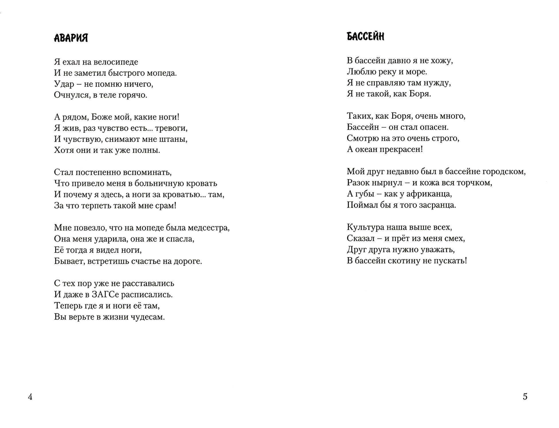 Я всегда считал, что если сапожник ходит в обуви, которую он сам сделал, а производители автомобилей ездят на машинах своего производства, значит это качественная продукция. Это моя вторая книга стихов. Я их сам перечитываю и получаю удовольствие.