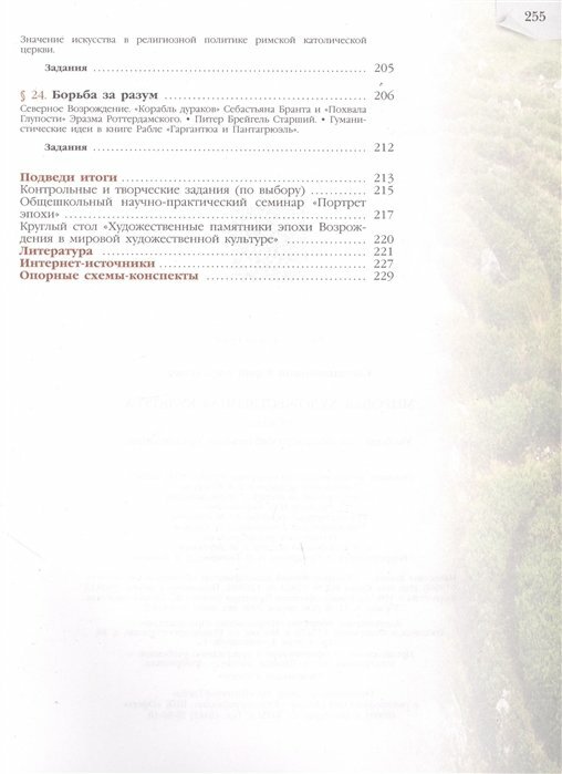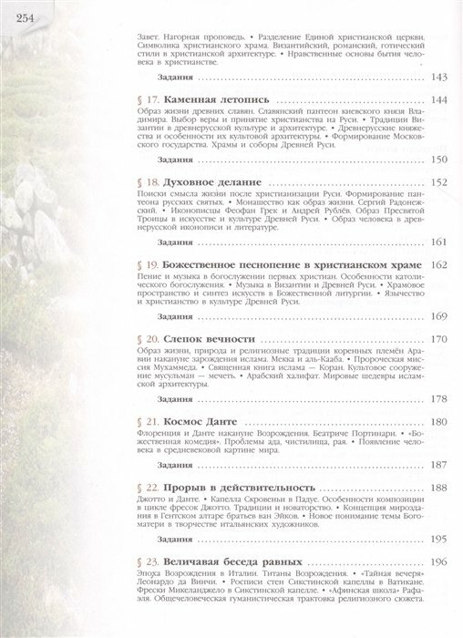 Учебник раскрывает закономерности развития мировой художественной культуры от зарождения её в первобытном обществе до эпохи Возрождения и рассматривает выдающиеся произведения различных видов искусства, созданные в странах Европы, Азии, Африки, Центральной Америки и России. Центральное место в нём занимает выявление сходства и различий в художественно-образном строе произведений искусства и отображение в них картины мира, духовно-нравственных исканий и общечеловеческих ценностей и идеалов человека конкретной эпохи. Соответственно требованиям ФГОС среднего (полного) общего образования учебник содержит вариативные задания для самостоятельной работы учащихся, ориентирующие на использование компьютерных технологий, закладывающие основы реализации проектно-исследовательской деятельности, а также помогающие организовать и планировать учебное сотрудничество и согласованное взамодействие участников. Учебник включает опорные наглядные конспекты и справочные материалы.