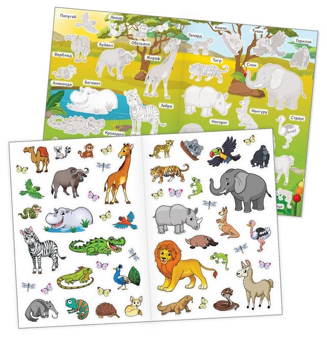 Познавательные наклейки Животные жарких стран 45 многоразовых наклеек (Сачкова Евгения Камилевна); Буква-ленд, 2020