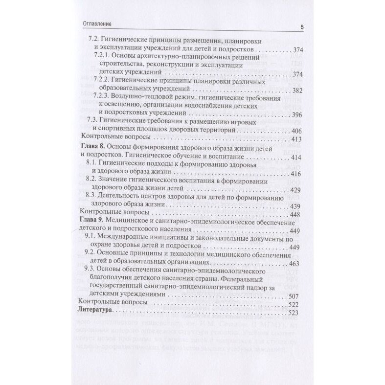 В учебнике даны современные представления о формировании здорового образа жизни детей и подростков, физиолого-гигиенические основы различных видов деятельности детей, освещены вопросы рационального питания детей, гигиенические требования к предметам детского обихода, гигиенические принципы архитектурно-планировочных решений и эксплуатации учреждений для детей и подростков, подходы к организации гигиенического воспитания, медицинское и санитарно-эпидемиологическое обеспечение детей и подростков. Предназначен студентам медицинских вузов.