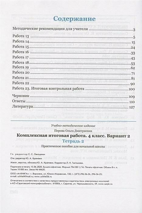 Комплексная итоговая работа 4 класс Вариант 2 Тетрадь 2 Практическое пособие для начальной школы (Перова М.); М-Книга Воронеж, 2020