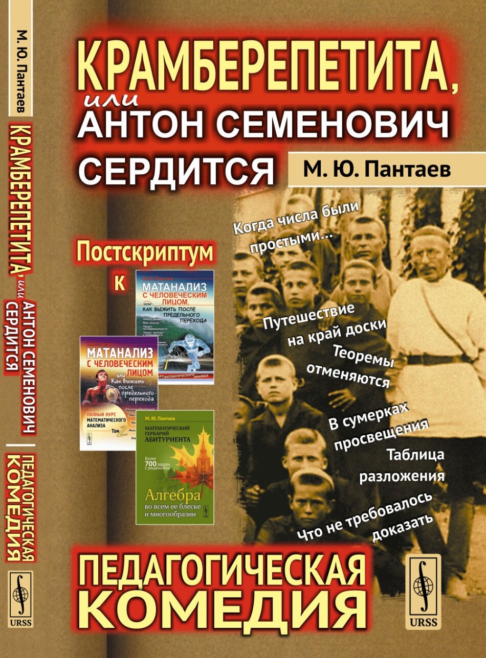 Данная педагогическая комедия представляет собой, во-первых, постскриптум к двум книгам автора: "Матанализ с человеческим лицом" (2-е изд. М: URSS, 2013) и "Математический гербарий абитуриента" (М: URSS, 2014), во-вторых - прощание с 25-летней деятельностью на ниве народного просвещения. . Название, разумеется, может вызвать вопросы. Что оно означает? Кто такой Антон Семенович и на что он сердится. Странное слово "крамберепетита" должно указывать на роковое сочетание crambe repetita. Оно принадлежит римскому сатирику Ювеналу (тому самому, о котором мог при желании потолковать Е. Онегин): "occidit miseros crambe repetita magistros" - "всё та же повторяемая капуста убивает несчастных учителей". . Цель у этого сборника человеческих документов - не столько привлечь внимание читающего меньшинства к той маленькой голгофе, на которой корчится несчастный педагог, совершенно лишенный веры в то, что его страдания хоть для чего-то нужны, сколько хотя бы отчасти показать, что стоит за учебниками математики, кем они пишутся, с какими намерениями и при каких обстоятельствах, припомнить некоторые вехи славного педагогического пути, приведшего, увы, в тупик, в тот рай, где за детьми, решающими задачки, как за преступниками следят видеокамеры. Ну, конечно, так в аннотациях говорить нельзя - нужен бодрый тон. Тогда обратимся к В. А. Сухомлинскому, который советовал "каждому учителю вести педагогический дневник - личные записи, заметки. Дневник, который ведется 10, 20, а то и 30 лет - это огромная ценность. Ведь у каждого думающего педагога есть своя система. Дневники педагогов я бы хранил в педагогических музеях и в научно-исследовательских институтах как бесценные сокровища". Издательство, ввиду бездействия - или отсутствия - данных инстанций, берет на себя почетную функцию - сохранение живого (еще пока) педагогического опыта. . Для кого эта книга? Для друзей автора, естественно, все книги пишутся только для друзей - для тех, кто по прочтении книги станет ему другом.