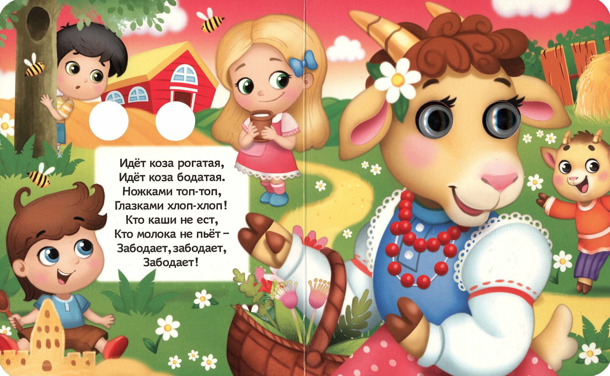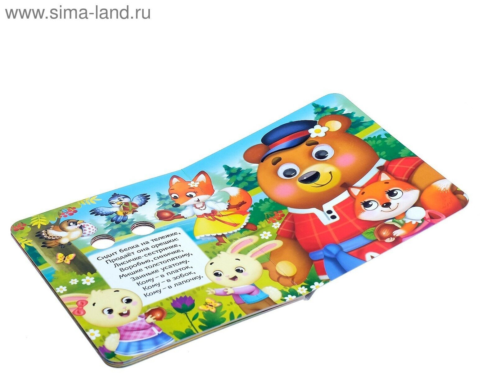 Книга сделана из плотного картона, поэтому прослужит долго. Каждый разворот имеет своего персонажа с забавными глазками, которые привлекут внимание малыша. Также внутри вы найдёте рассказы в стихотворной форме.