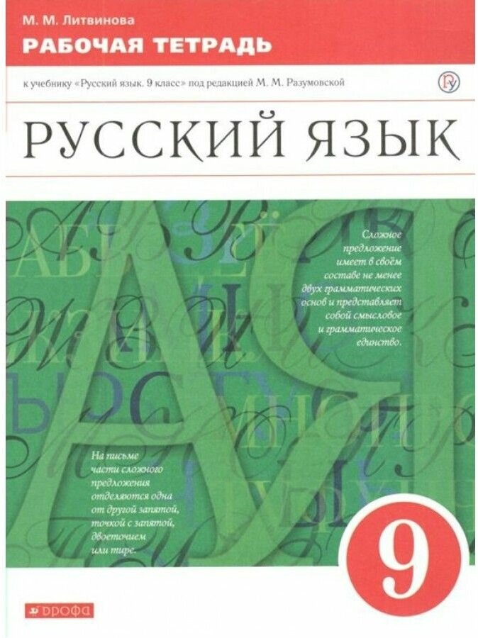 Русский язык 9 класс Рабочая тетрадь К учебнику Русский язык 9 класс под редакцией М М Разумовской (Марина Михайловна Литвинова); Дрофа, 2020