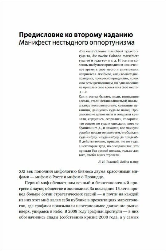 Компания обязана иметь стратегию и строго ей следовать. Эта догма вкладывалась в умы менеджеров всего мира преподавателями вузов и бизнес-школ, а также книгами и деловыми журналами. Но всегда ли стратегический подход работает? Может ли гибкий "оппортунистический" подход к управлению быть более эффективным?Марк Розин, консультант с 20-летним стажем, не только делится своими наблюдениями за попытками внедрения западного, стратегического подхода к управлению, но и показывает, что "оппортунистический" подход, основанный на гибкости и использовании неожиданных возможностей, зачастую лучше работает в российских условиях. Особенно актуальным "оппортунизм" становится в кризис, когда только гибкость и предпринимательство могут спасти компанию. Автор описывает эффективные управленческие технологии, которые использует руководитель-"оппортунист" при создании организационной структуры, организации работы, мотивировании, оценке и развитии подчиненных.Книга адресована руководителям компаний, менеджерам и консультантам.