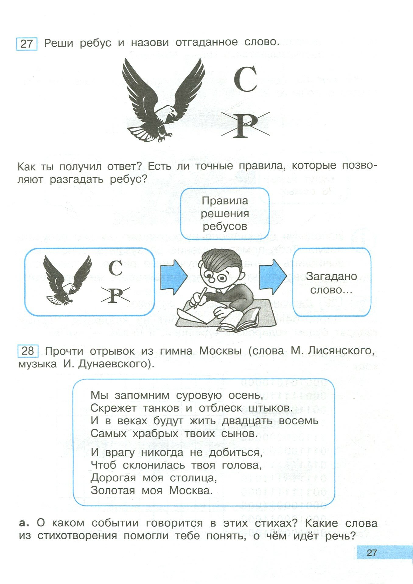 Учебник разработан в соответствии с требованиями федерального государственного образовательного стандарта начального образования и концепцией комплекта «Перспективная начальная школа». Учебник начинает обучение информатике учащихся младших классов. Он может быть использован как при наличии компьютеров, так и при их отсутствии. Учебник включает в себя не только систему заданий, но и необходимые пояснения по их выполнению. В первой части учебника обсуждается понятие информации, ее источники, поиск, преобразование, происходит первое знакомство с устройством компьютера. Многие задания имеют игровой характер: дети раскрашивают, рисуют, придумывают свои шифры, участвуют в дискуссиях и т. д. К учебнику прилагается CD с комплектом компьютерных программ, которые формируют навыки работы на компьютере и помогают глубже усвоить материал курса информатики. (Министерство образования и науки РФ)