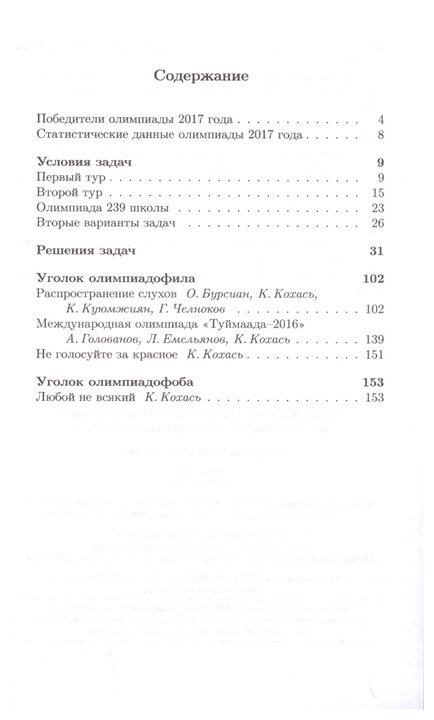 Книга предназначена для школьников, учителей, преподавателей математических кружков и просто любителей математики. Читатель найдет в ней задачи Санкт-Петербургской олимпиады школьников по математике 2017 года, а также открытой олимпиады ФМЛ № 239, которая, не будучи туром Санкт-Петербургской олимпиады, по характеру задач, составу участников и месту проведения является прекрасным дополнением к ней.