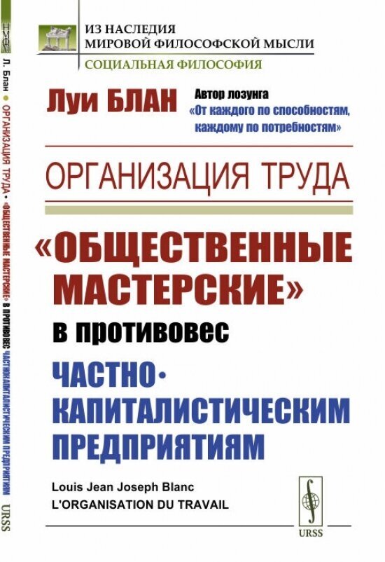 Вниманию читателей предлагается книга известного французского социалиста, историка и журналиста Луи Блана (1811-1882), в которой он представляет свои взгляды на организацию труда, выступая с критикой капиталистического строя. Основу социалистической концепции автора, изложенной в настоящей работе, составляет идея общественных мастерских. Государство, считает он, должно создавать социальные мастерские, т. е. производительные ассоциации, которые постепенно вытеснили бы все частные промышленные предприятия. Уставы для мастерских должны быть составлены самим государством, с тем чтобы они имели форму и силу закона. Заработная плата рабочих в общественных мастерских должна зависеть от степени важности и сложности исполняемых обязанностей, однако ее должно хватать на удовлетворение всех потребностей. Блан предполагает, что члены мастерских, изучив способности друг друга, распределят все функции между собой на основании избирательного принципа, а до этого времени административные и производственные функции будет осуществлять государство. Борьба общественных мастерских с частной промышленностью, по мнению Блана, не будет продолжительной, поскольку они обнаруживают слишком очевидные преимущества, и не станет губительной, так как государство постарается облегчить ее последствия. Книга рекомендуется историкам, социологам, философам, экономистам, всем заинтересованным читателям.