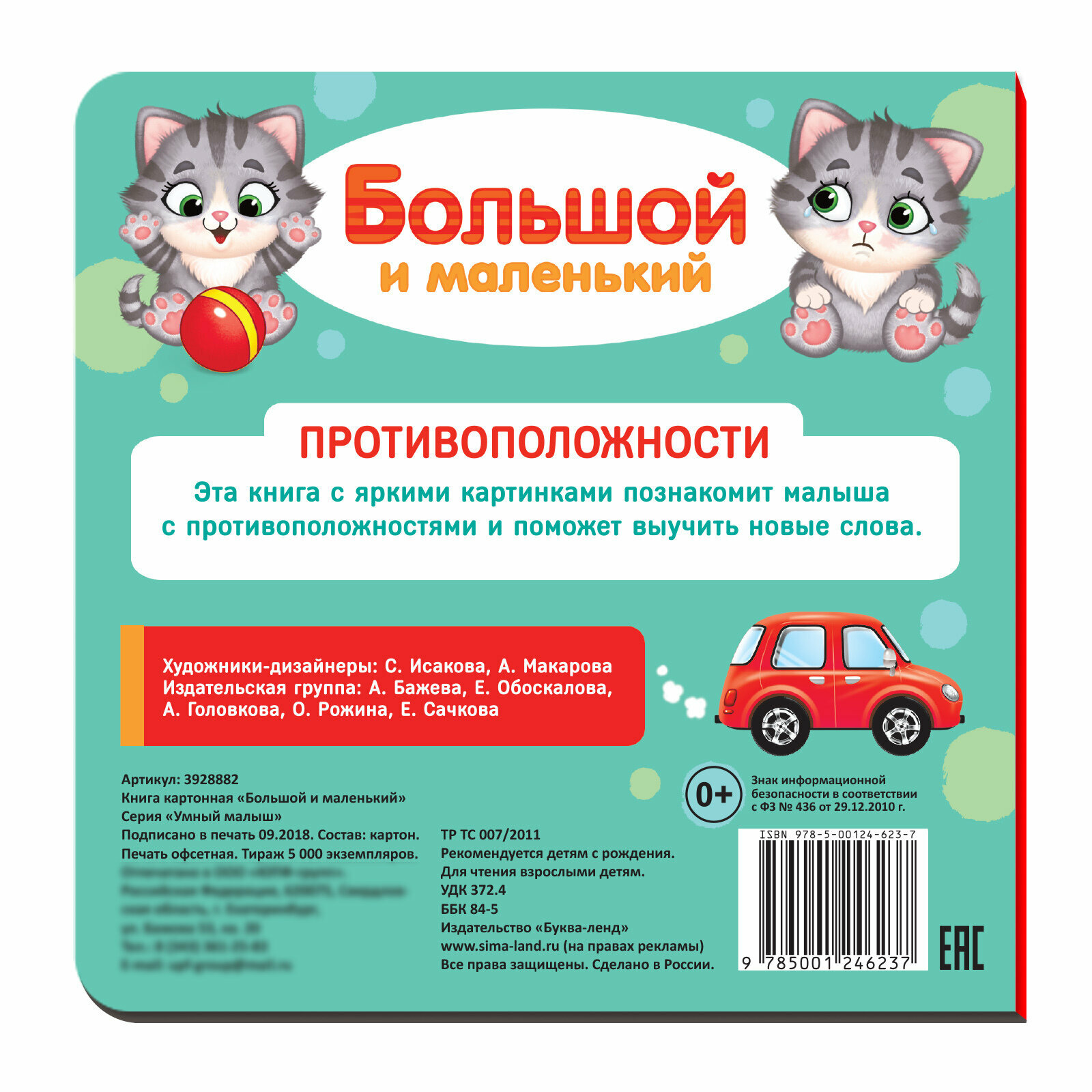 Книга «Большой и маленький» — отличный вариант для тех родителей, которые привыкли окружать своего малыша только лучшими и качественными вещами. За такой книжкой ваш ребёнок проведёт время с пользой и удовольствием, узнает много нового и интересного.