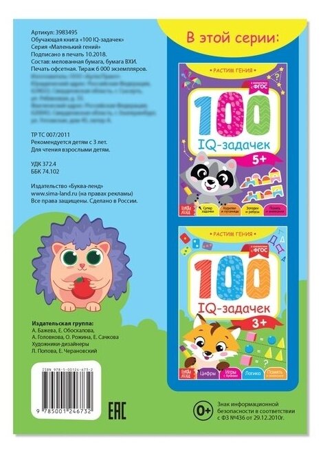 Сервис сравнения цен СкидкаГИД предлагает сравнить цены на товар «Книга: 100 IQ задачек (Сачкова Евгения Камилевна); Буква-Ленд, 2019»