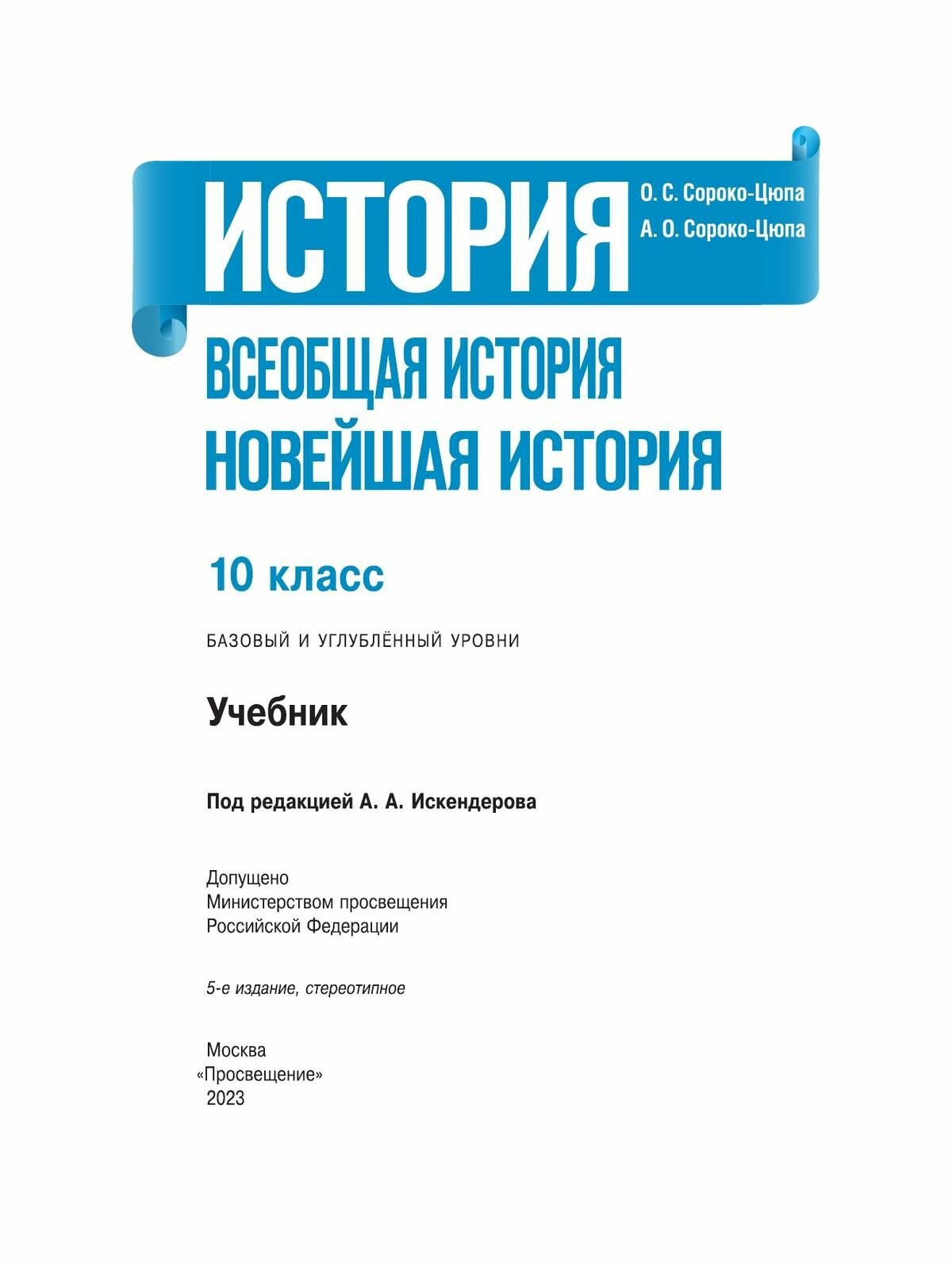 История Всеобщая история Новейшая история 10 класс Учебник Базовый и углубленный уровни (Олег Стефанович Сороко-Цюпа); Просвещение, 2022