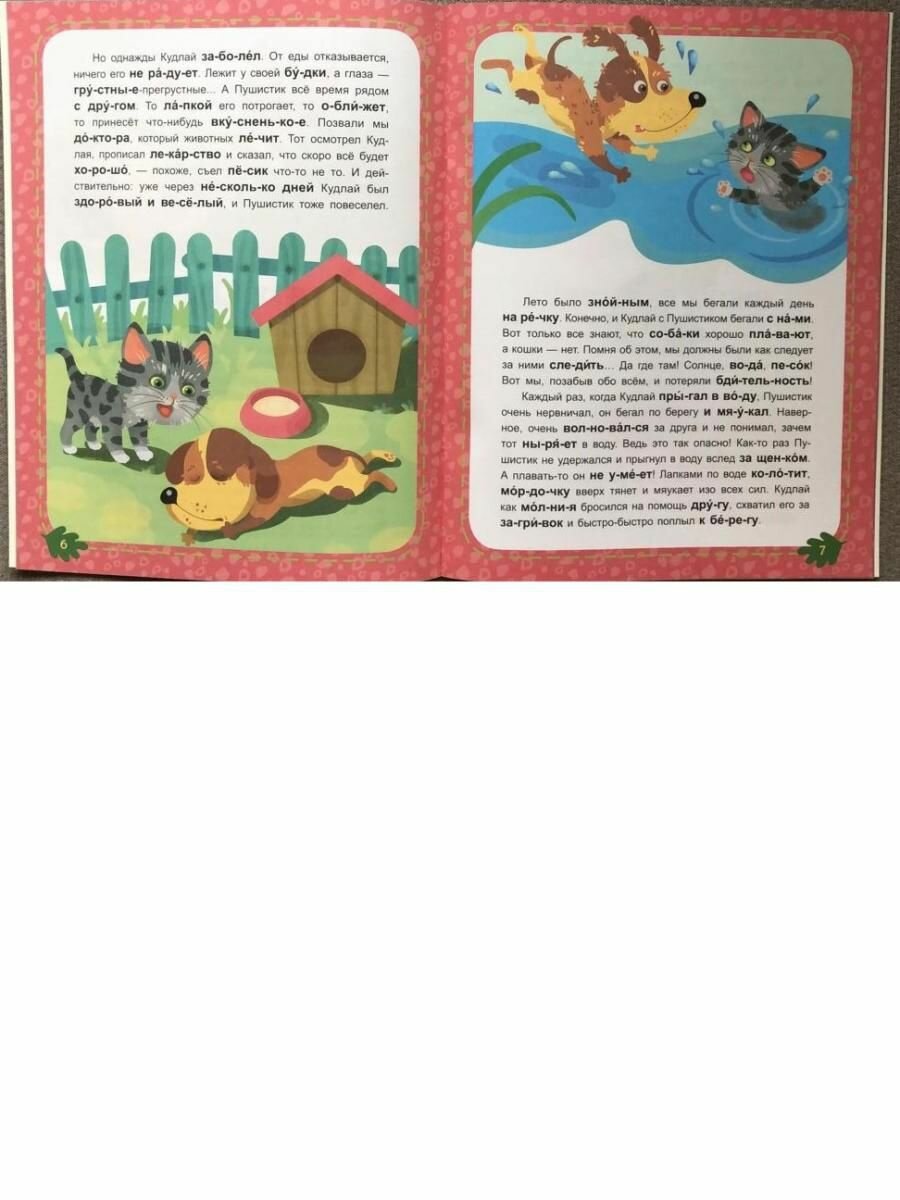 Спасибо издателям за такую чудесную серию. Даже оказалось мало книг, хотелось бы побольше. Всего 3 уровня сложности, в каждом уровне 2 книги. В каждой книге 4 рассказа. В этой книге рассказы такие: Волнистый попугайчик, Щенок и котёнок, Удивительные растения, Кем я хочу стать. Очень продуманно сделана книга: и шрифт, и вопросы к текстам, и малое количество слов с переносами. Обложка плотная, лакированная. Еще раз спасибо издателям!