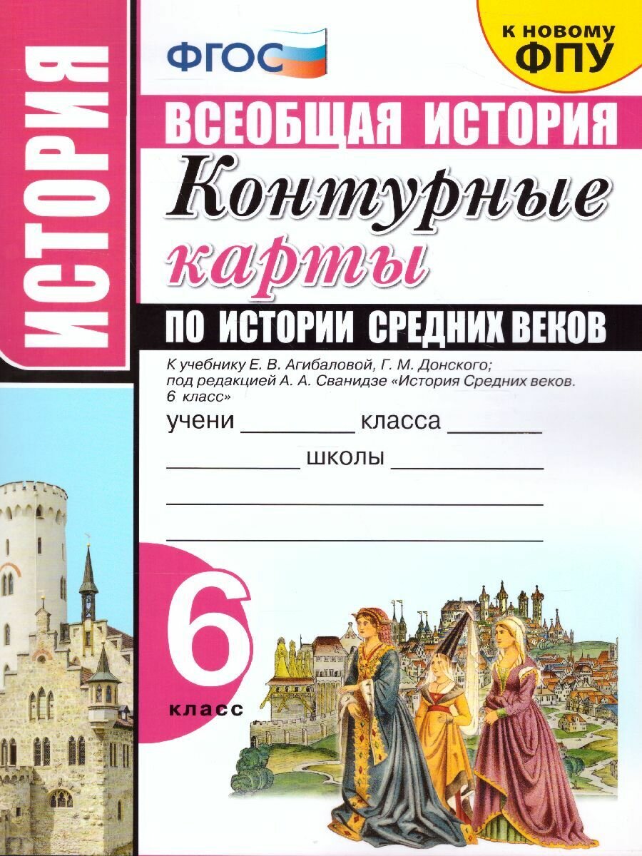 Контурные карты по истории Средних веков 6 класс К учебнику Е В Агибаловой Г М Донского под редакцией А А Сванидзе История Средних веков 6 класс (без автора); Экзамен Издательство, 2019