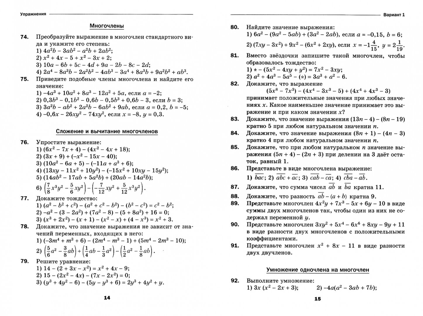 В-1 № 1-100 - Алгебра 7 класс Мерзляк дидактические материалы