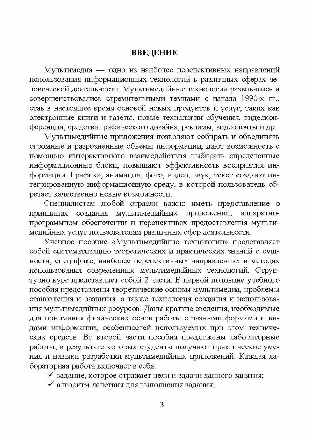 В учебном пособии изложены основные понятия и положения курса "Мультимедийные технологии". Рассмотрены специфика создания мультимедийных приложений, аппаратно-программного обеспечения, основные направления и методы использования мультимедиа, а также особенности восприятия мультимедийной формы представления информации. Лабораторный практикум позволяет получить навыки работы с графической информацией, а также умения конструирования и создания мультимедийных приложений.