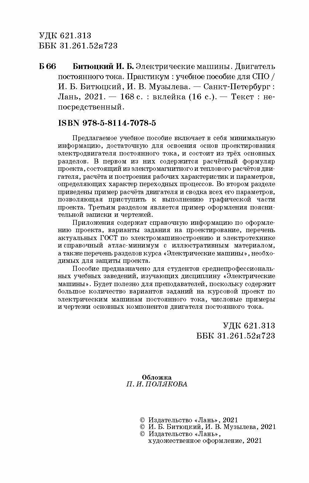 Сервис сравнения цен СкидкаГИД предлагает сравнить цены на товар «Книга: Электрические машины Двигатель постоянного тока Практикум Учебное пособие (Битюцкий Игорь Борисович, Музылева Инна Васильевна); Лань, 2021»