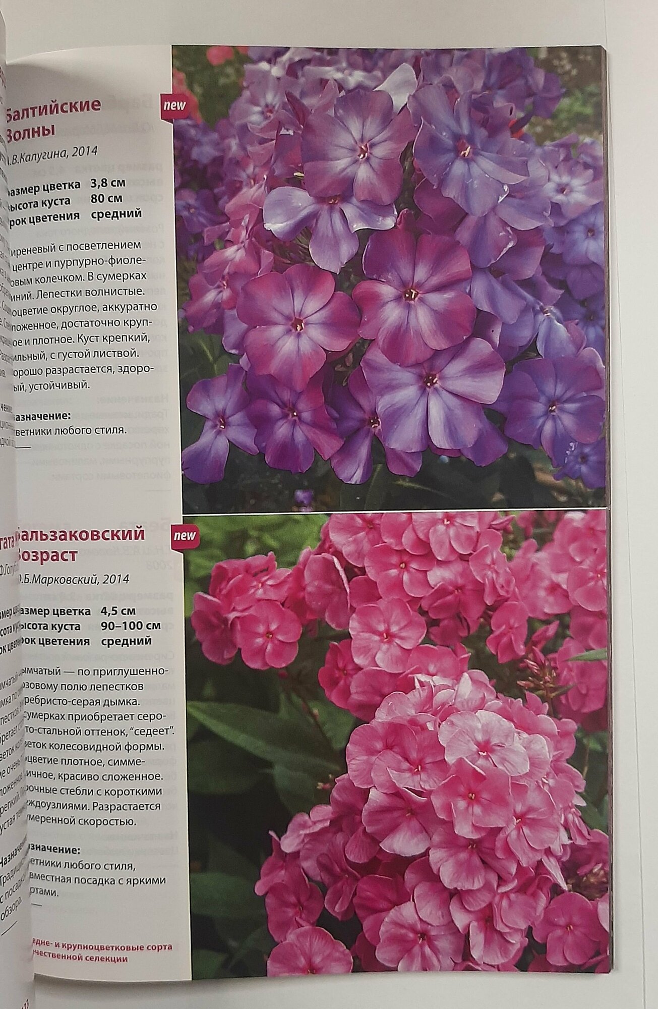 издание выглядит как красочный журнал, на каждой странице которого представлено по 2 флокса с фотографией и кратким описанием. в интернете, конечно, такого добра навалом, но бумажный вариант всегда приятней. вот бы такие каталоги выпускались каждый год, да с новыми сортами, да с комментариями многоопытных флоксоводов... -