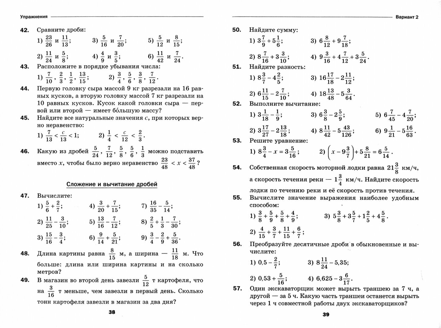 Пособие придётся весьма кстати тем, кто занимается по учебнику Математики для 6 класса (авторов Мерзляк А. Г., В. Б. Полонский, М. С. Якир). Первые 124 стр - это упражнения в 4-х вариантах (по 229 заданий в каждом, разделённые для удобства по темам). А в конце пособия по 12 контрольных работ для каждого из двух вариантов. Ребёнок заметил, чтобы многие задания из данного пособия потом встречаются в самостоятельных и проверочных работах в школе.