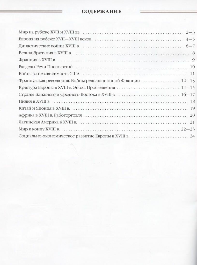 Атлас по истории нового времени. XVIII в. 8 класс. Линейная структура курса.