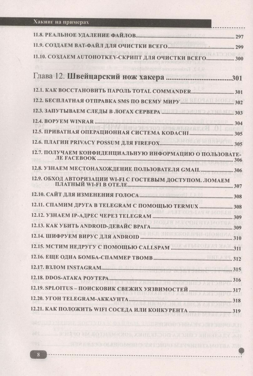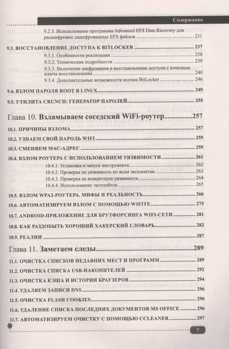 Отдельная глава посвящена взлому паролей. В основном мы будем взламывать пароль учетной записи Windows и рассмотрим, как можно взломать шифрование EFS и зашифрованный диск BitLocker. Также рассмотрим, как взламывается пароль WiFi.
