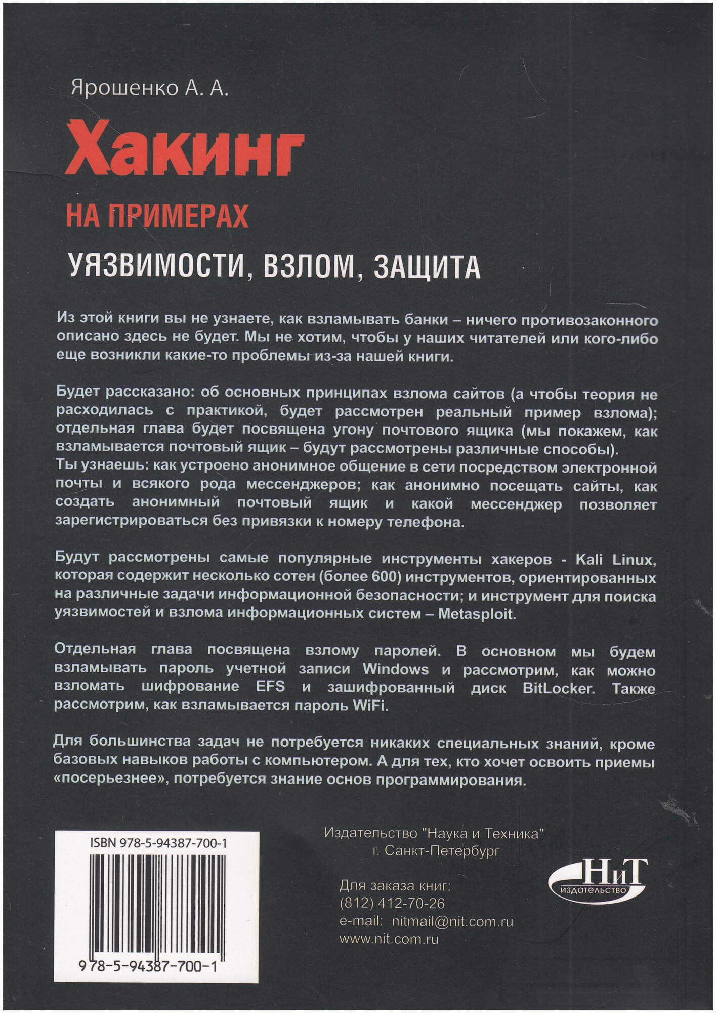 ХАКИНГ на примерах Уязвимости взлом защита (Ярошенко Алла Анатольевна); Наука и техника, 2021