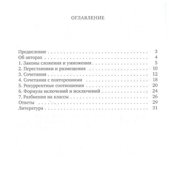 Учебное пособие содержит более 200 математических задач, знакомящих студентов с простейшими методами комбинаторики. Приведены только задачи и ответы, теоретический материал можно найти в учебниках, перечисленных в списке литературы. Для преподавателей математики студентам лингвистических направлений, а также для студентов бакалавриата и магистратуры. Пособие ориентировано на аудиторную работу и выполнение контрольных заданий промежуточной аттестации.
