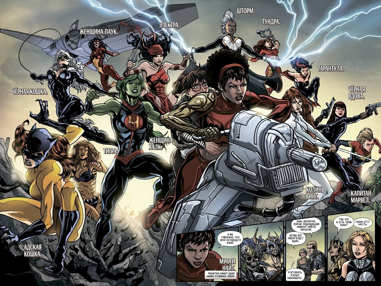 Данный комикс посвящен команде, состоящей целиком из женских персонажей. И, благодаря прекрасному детализированному рисунку, представляет собой настоящее визуальное наслаждение для глаз. Сюжет тоже достаточно хороший и интригующий. Комикс тоненький, но динамичный, с множеством эпичных боевых сцен.